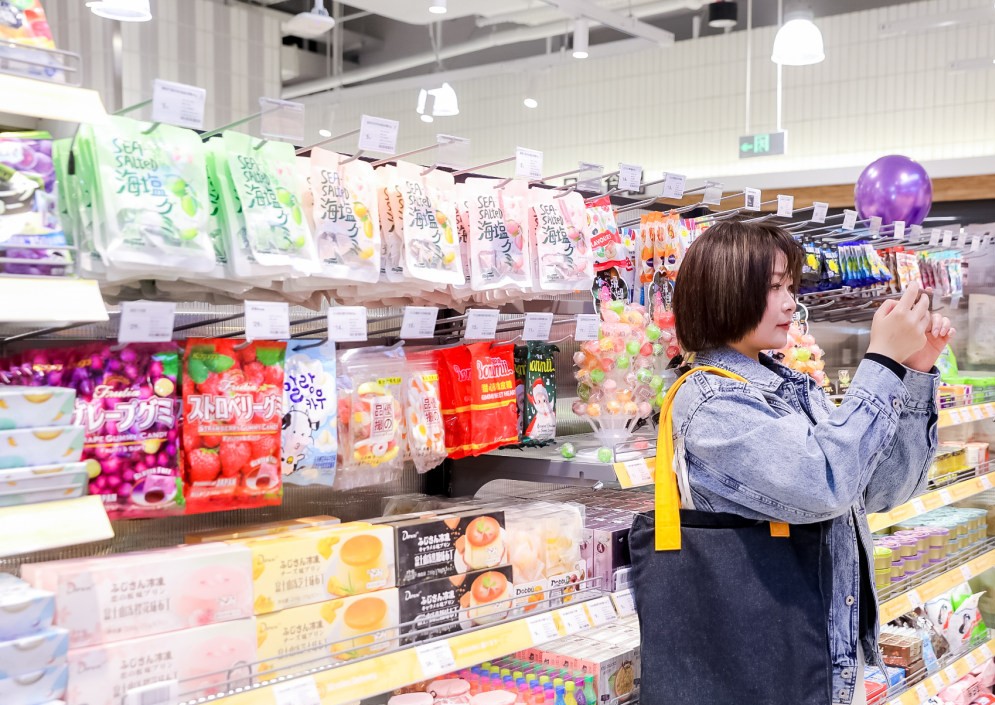 再往里,城市生活的活色生香徐徐展开,宽敞的过道,舒适的灯光和包装陈列整齐划一的商品带来了强烈的干净、新鲜、舒适感,让人禁不住想慢下来,好好逛一逛。