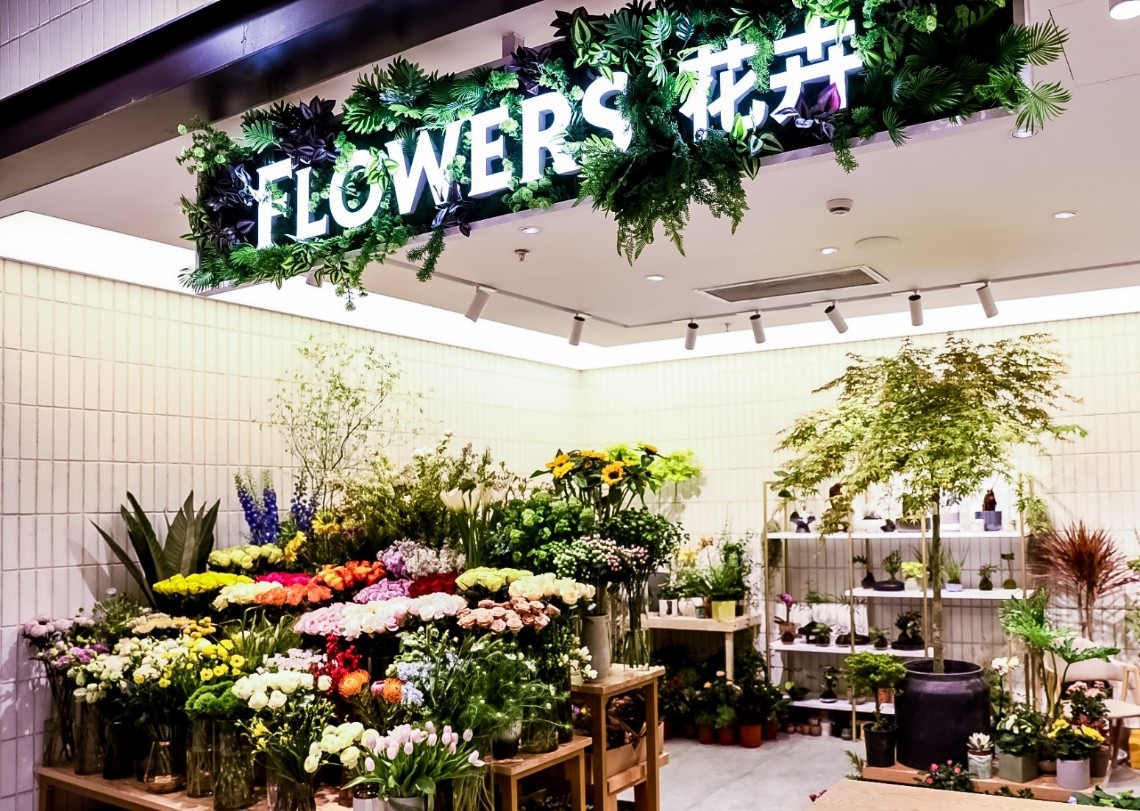 在门口排队时,大家就已被混杂着面包与鲜花的香气所吸引,随着人流涌进入店里,一进门印入眼帘的,左边是超高颜值的蛋糕面包,右边则是花团锦簇,美不胜收。
