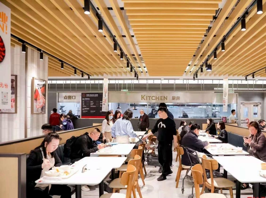 这样的规划极大满足了“购物+就餐”的消费场景:消费者来到超市购物,没有强制动线的引导,购物、休闲、餐饮,甚至只是喝杯咖啡和下午茶,临走时带上晚餐的食材;也可以逛累了吃顿便饭;或者是约上家人好友,只为一顿大餐而来。