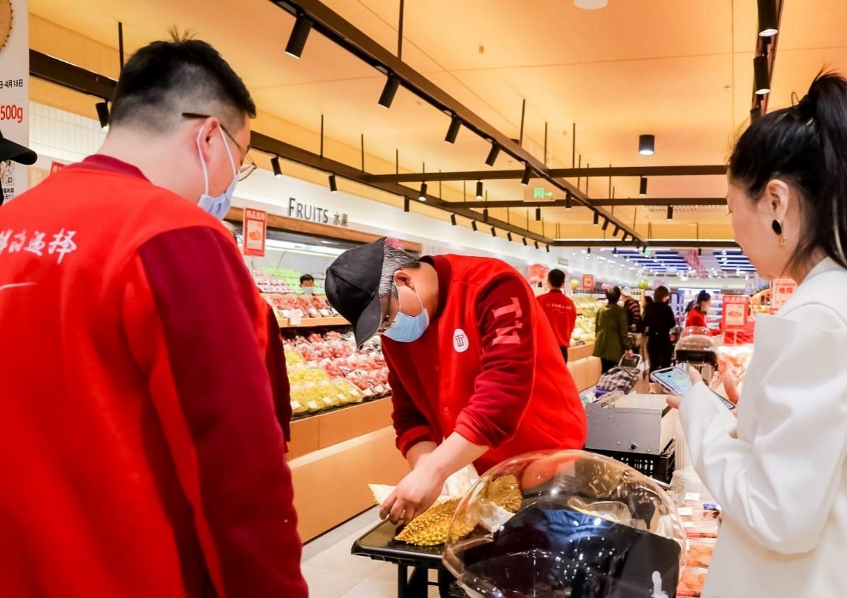 新店开业,无论是新鲜商品的介绍,还是自助式收银,都少不了服务人员的协助。经历过严格的岗前培训,古北门店内的员工们都拿出了一百分的热情和专业的态度,随时准备为顾客们提供服务。在T11,你可以放心提出你的需求,每一位员工都会竭尽所能,最大限度地满足顾客的愿望。
